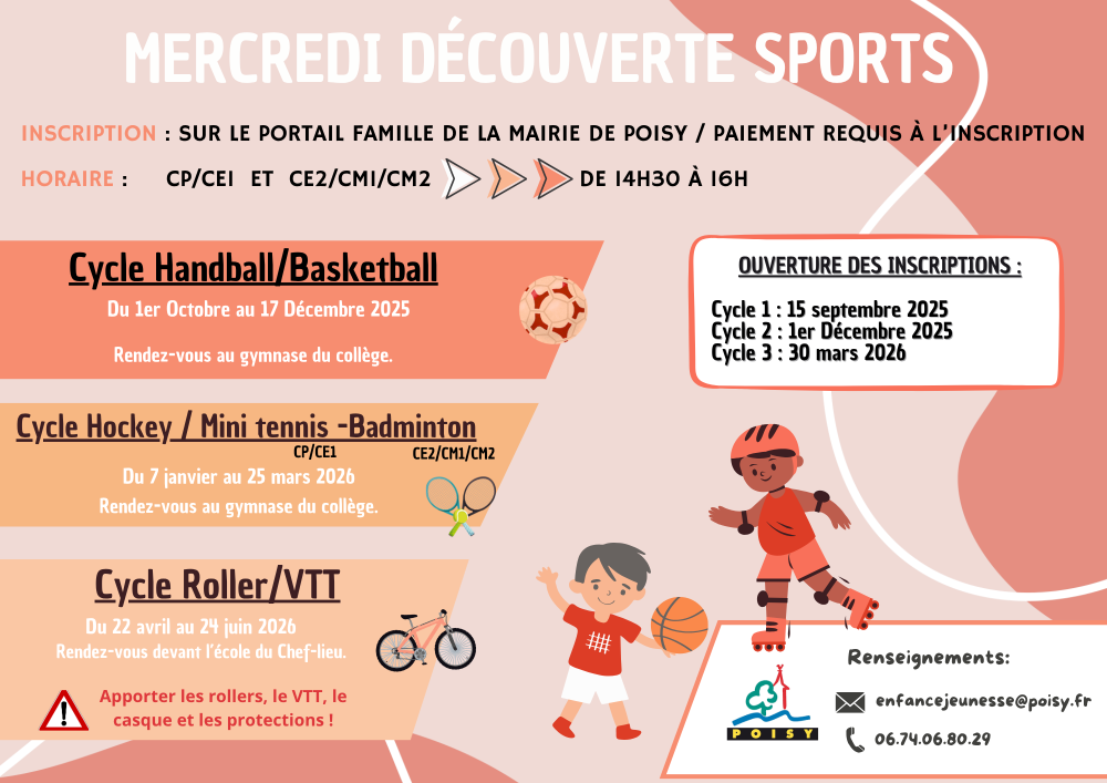 Vous êtes ici : Accueil > Petite Enfance / Enfance / Jeunesse > Activités extrascolaires > "Découverte Sports" du mercredi > Découverte sports 2025-2026