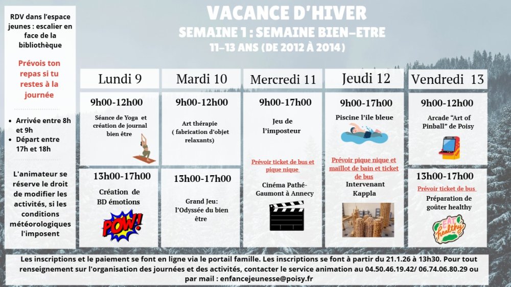 Vous êtes ici : Accueil > Petite Enfance / Enfance / Jeunesse > Activités extrascolaires > Accueil de loisirs vacances scolaires > Bilan et Programmes d’activités des vacances 11/13 ans - Bilan et Programmes d’activités des vacances 11/13 ans - Publié : 14 novembre 2025 Mis à jour : 22 janvier 2026