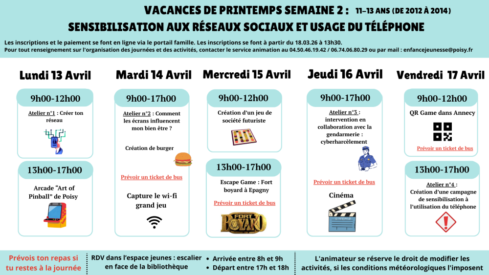 Vous êtes ici : Accueil > Petite Enfance / Enfance / Jeunesse > Activités extrascolaires > Accueil de loisirs vacances scolaires > Bilan et Programmes d’activités des vacances 11/13 ans - Bilan et Programmes d’activités des vacances 11/13 ans - Publié : 14 novembre 2025 Mis à jour : 16 mars 2026